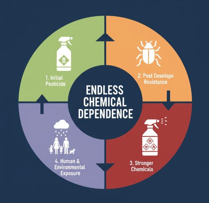 For decades, the pest control industry has followed the same pattern: when insects develop resistance to a pesticide, the response has been to introduce a stronger chemical. This cycle does not solve the problem—it intensifies it. Instead of breaking free from chemical dependence, each new generation of products introduces compounds that are often more potent, more persistent, and more hazardous to human health.